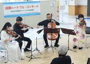 読売日本交響楽団(読響)のメンバーによる「読響ハートフル・コンサート」が6日、八戸市の八戸市立市民病院で開かれた。バイオリン、ビオラ、チェロからなる弦楽四重奏の美しい調べに、入院患者や職員が聴き入った。